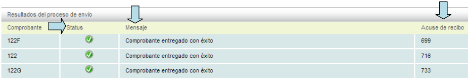 Si el o los comprobantes son válidos, el sistema le notificará y le otorgará un Acuse de Recibo.