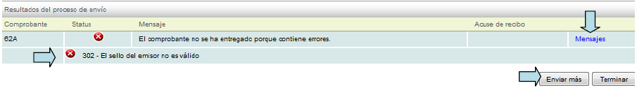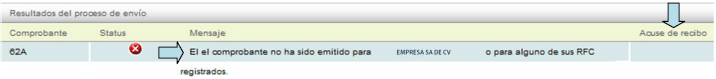 Si el o los comprobantes no son válidos, el sistema le notificará y NO le otorgará el acuse de recibo, en este caso le indicará la razón por la que el comprobante fue rechazado.
