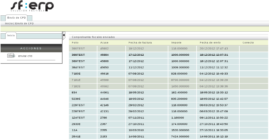 The main panel will display the uploaded and validated e-documents. Those e-documents that appear “Crossed out” mean that your client maintains a “Canceled” status for that e-document.